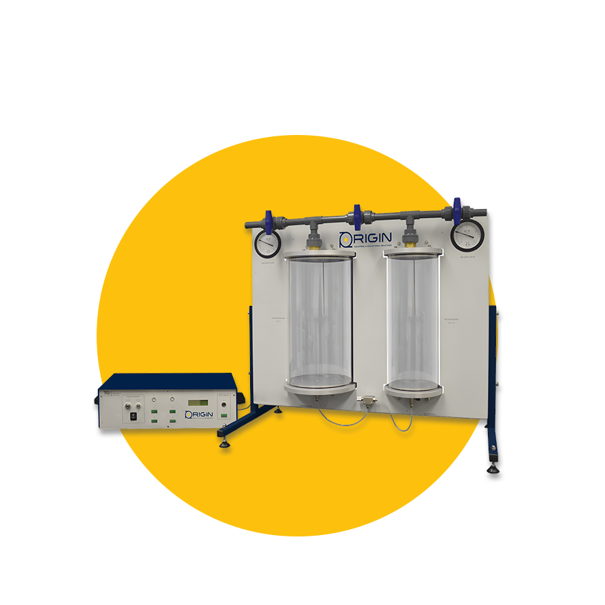 The Cooling by Evacuation trainer is an apparatus created to illustrate vacuum cooling principles rooted in evaporative cooling.